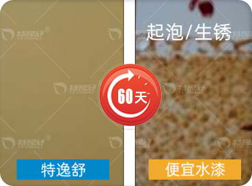 干膜厚75-90um室溫養(yǎng)護(hù)7天,特逸舒水漆泡水60天 不生銹、不起泡
